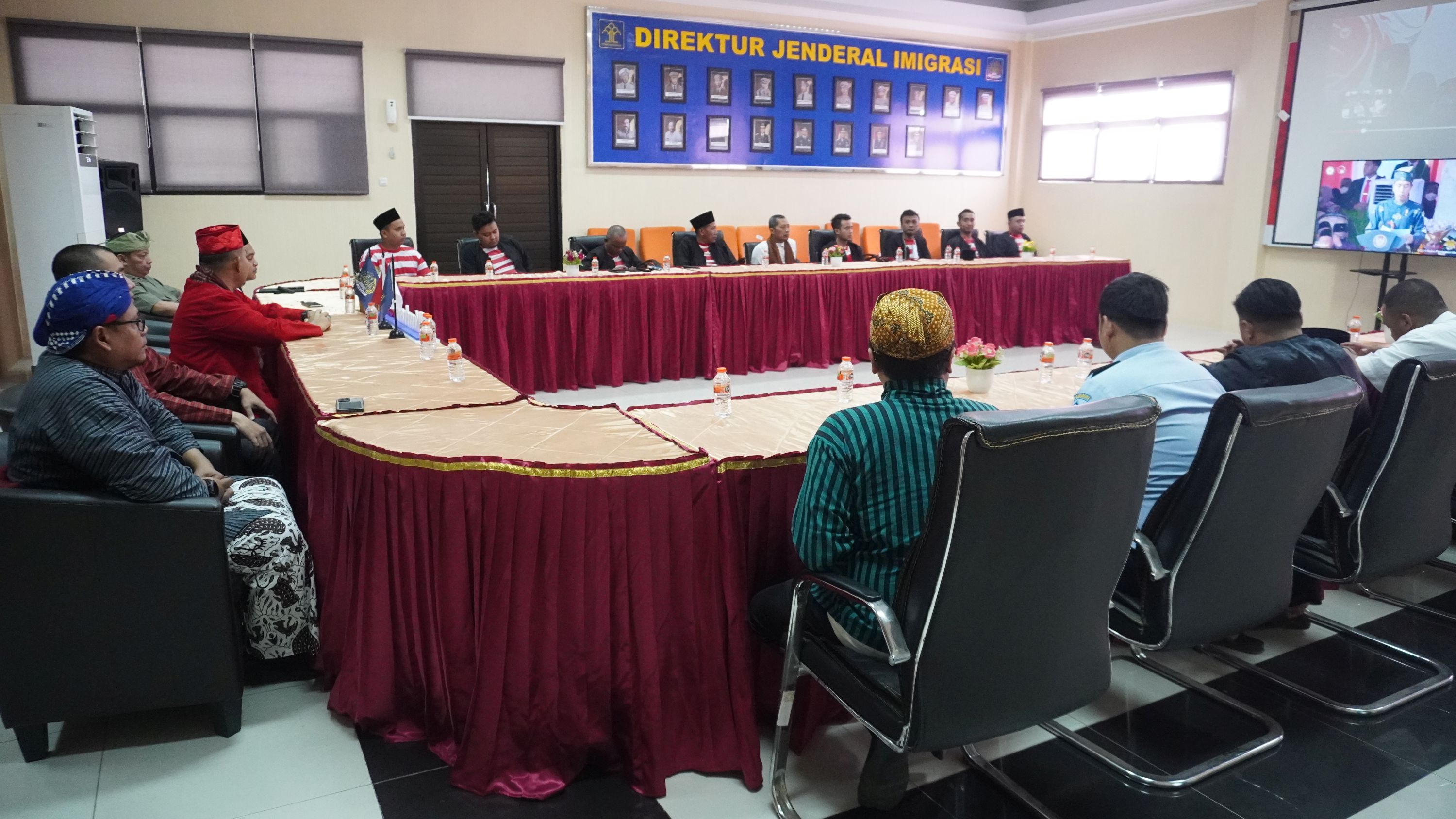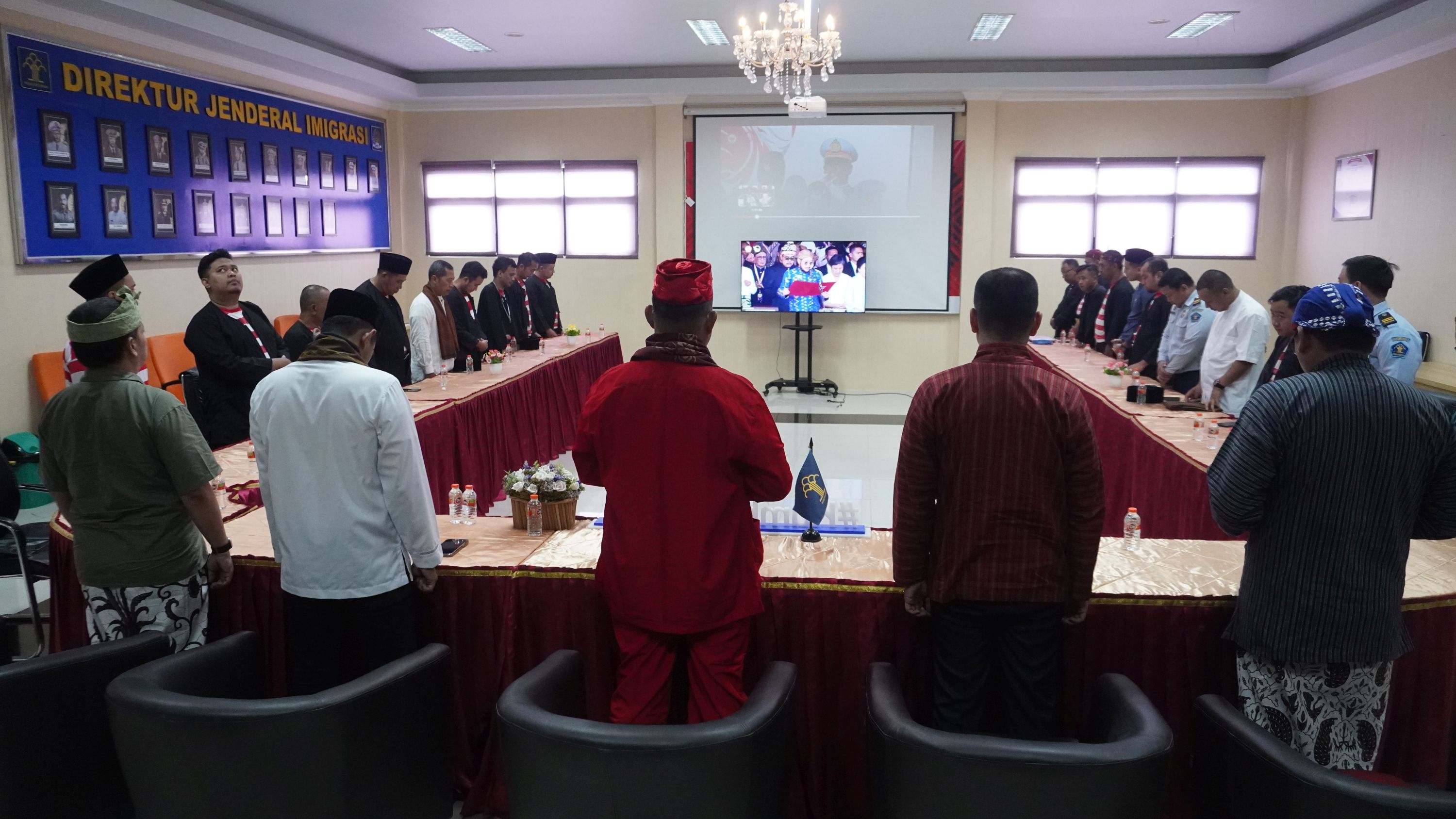 PAMEKASAN - Pada hari ini, Kamis (01/06), diperingati sebagai Hari Lahir Pancasila dan seluruh instansi pemerintah diwajibkan untuk melakukan upacara bendera secara virtual tanpa terkecuali. Berlangsung pada pukul 08.00 WIB, seluruh Aparatur Sipil Negara di lingkungan Kantor Imigrasi Kelas II Non TPI Pamekasan Kanwil Kemenkumham Jawa Timur melaksanakan upacara bendera secara virtual melalui kanal Youtube BPIP di Aula Ratu Pamelingan Kantor Imigrasi Kelas II Non TPI Pamekasan dengan mengenakan pakaian adat.