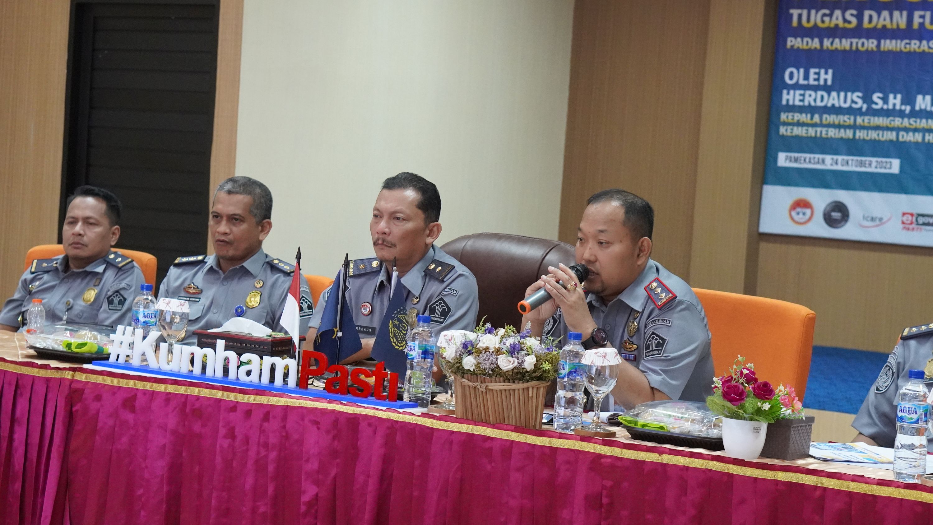 Kedatangan Kadiv Keimigrasian Herdaus didampingi oleh Kabid Perizinan dan Informasi Keimigrasian Perdemuan Sebayang, Kasubbid Perizinan Keimigrasian Eko, serta ADC Kadivim Rizki. Adapun kedatangan Kadiv Keimigrasian dan tim disambut langsung oleh Kepala Kantor Imigrasi (Kakanim) Imam Bahri, Kasubbag Tata Usaha R Pandu Bayuaji SP, Kasi Teknologi Informasi dan Komunikasi Keimigrasian Harsya Wardhana, Kasi Intelijen dan Penindakan Keimigrasian Agus Surono serta Kasi Dokumen Perjalanan dan Ijin Tinggal Farhan Ferdiansyah, beserta segenap pejabat Eselon V.