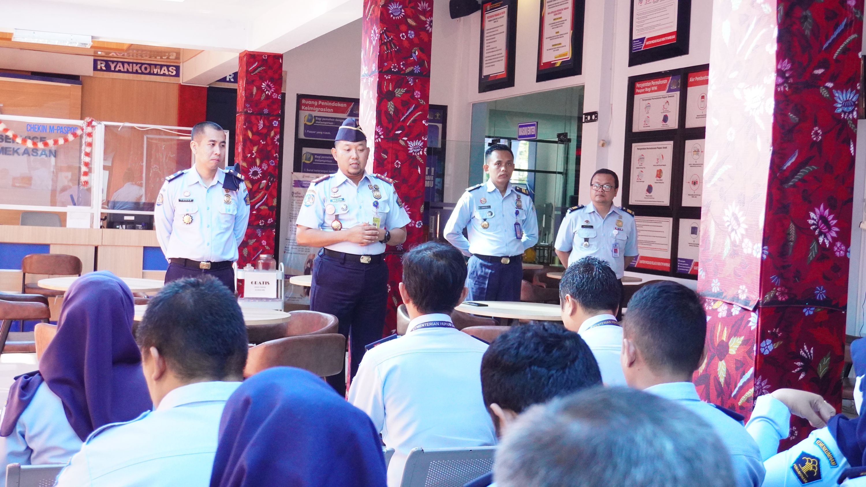 Memimpin kegiatan briefing pagi, Kepala Kantor Imigrasi Kelas II Non TPI Pamekasan Imam Bahri menyampaikan sejumlah arahan. Pertama, menjaga kerapihan ruang kerja dan disiplin berpakaian sesuai tugasnya. "Petugas Customer Service dan Duta Layanan wajib melayani pemohon dengan sabar, senyum dan arahkan menuju ke ruang Pelayanan Permohonan Paspor. Bagi pegawai yang berada di booth foto dan wawancara, lakukan pengecekan rutin terhadap kerapian meja kerja masing-masing, jangan sampai menimbulkan kesan yang kurang nyaman," tuturnya.