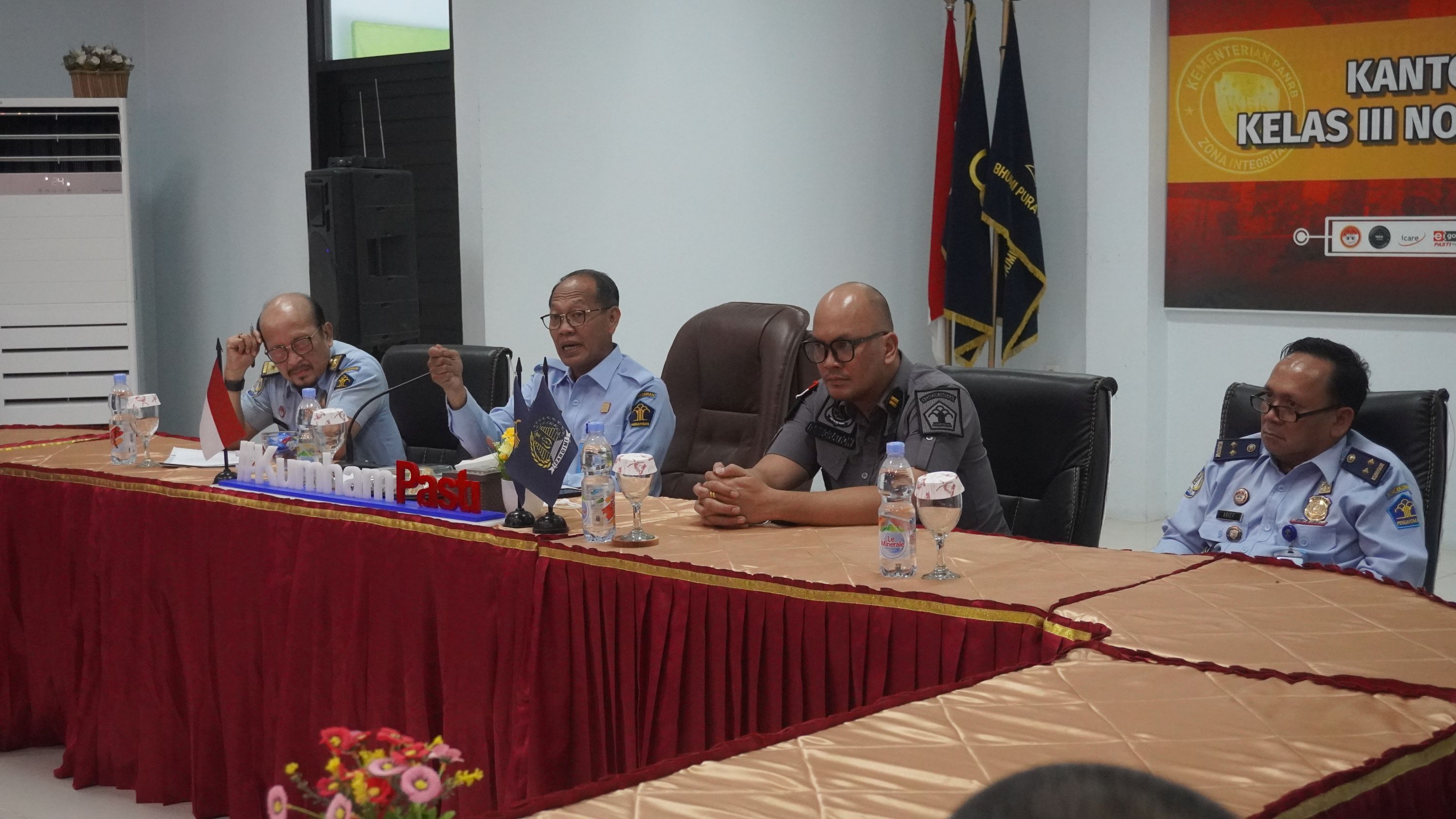 PAMEKASAN - Dalam kegiatan kunjungan ke Kantor Imigrasi Kelas III Non TPI Pamekasan, Kepala Kantor Wilayah (Kakanwil) Kementerian Hukum dan HAM Provinsi Jawa Timur Imam Jauhari menyampaikan sejumlah instruksi dari Menteri Hukum dan HAM Yasonna H Laoly pada Senin (09/01/2023).