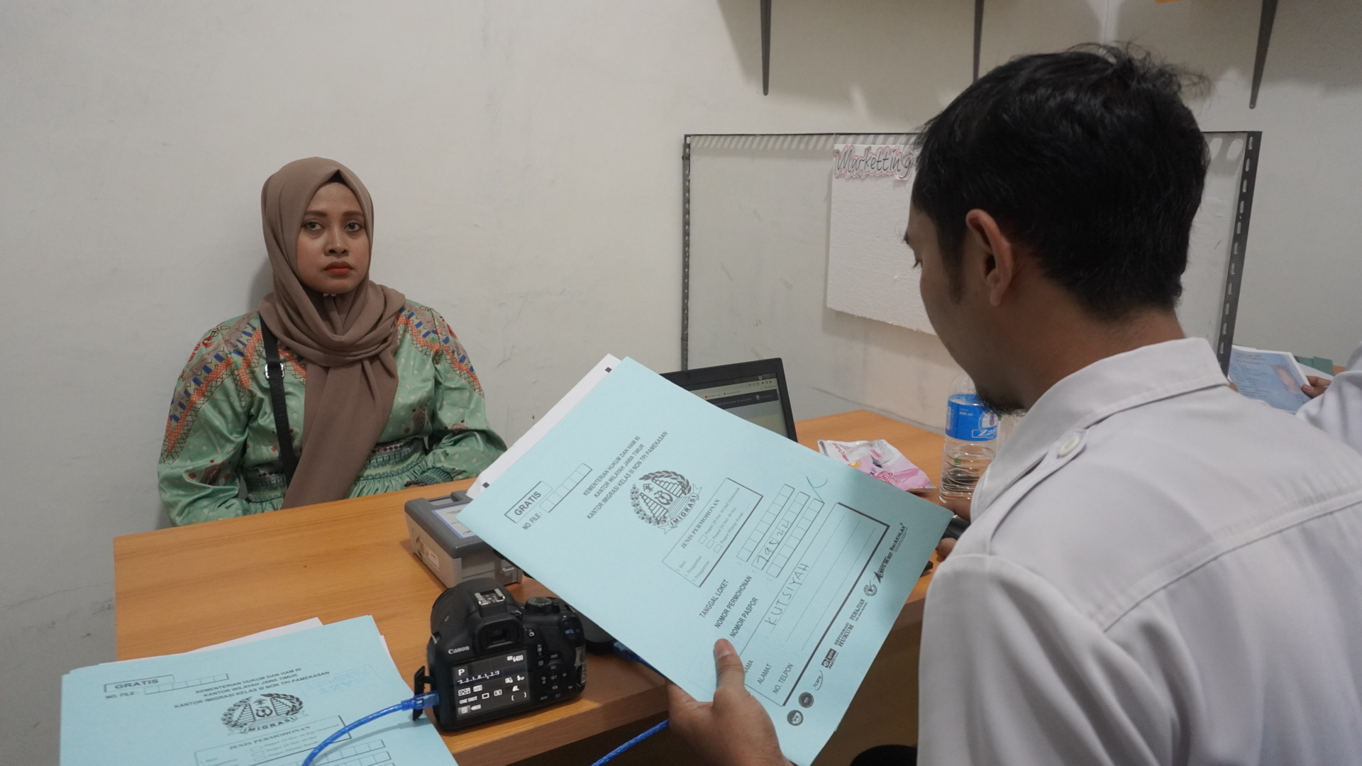 PAMEKASAN - Sebanyak 37 orang jamaah Umroh yang berada di PT. Karya Lana Sejahtera yang berlokasi di Kecamatan Ketapang Kabupaten Sampang menerima layanan Eazy Passport pada Rabu (23/11/2022). Dimulai pada pukul 11.00 waktu setempat, para jamaah dilayani oleh 6 orang petugas dari Kantor Imigrasi Kelas III Non TPI Pamekasan Kantor Wilayah Kementerian Hukum dan HAM Jawa Timur.