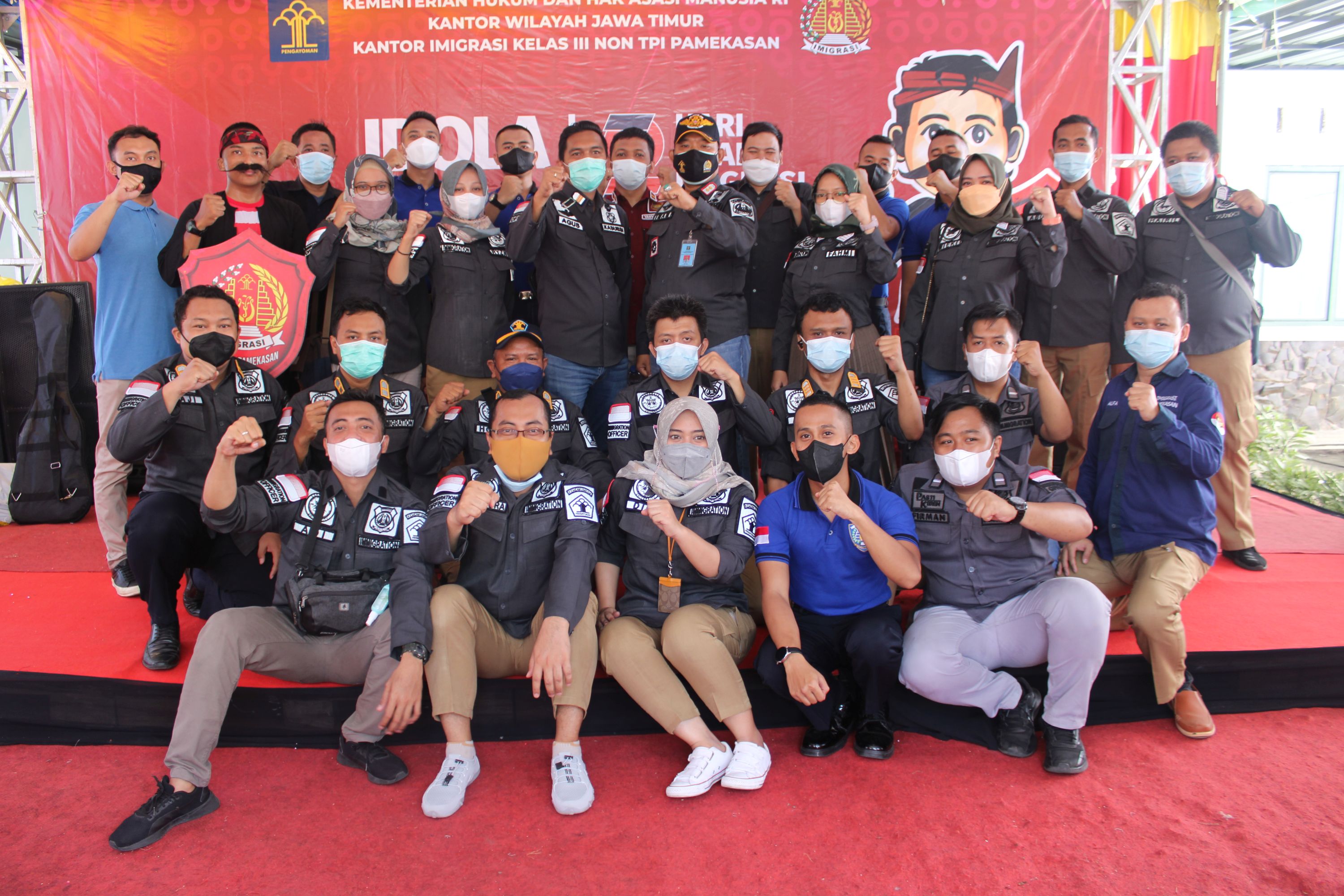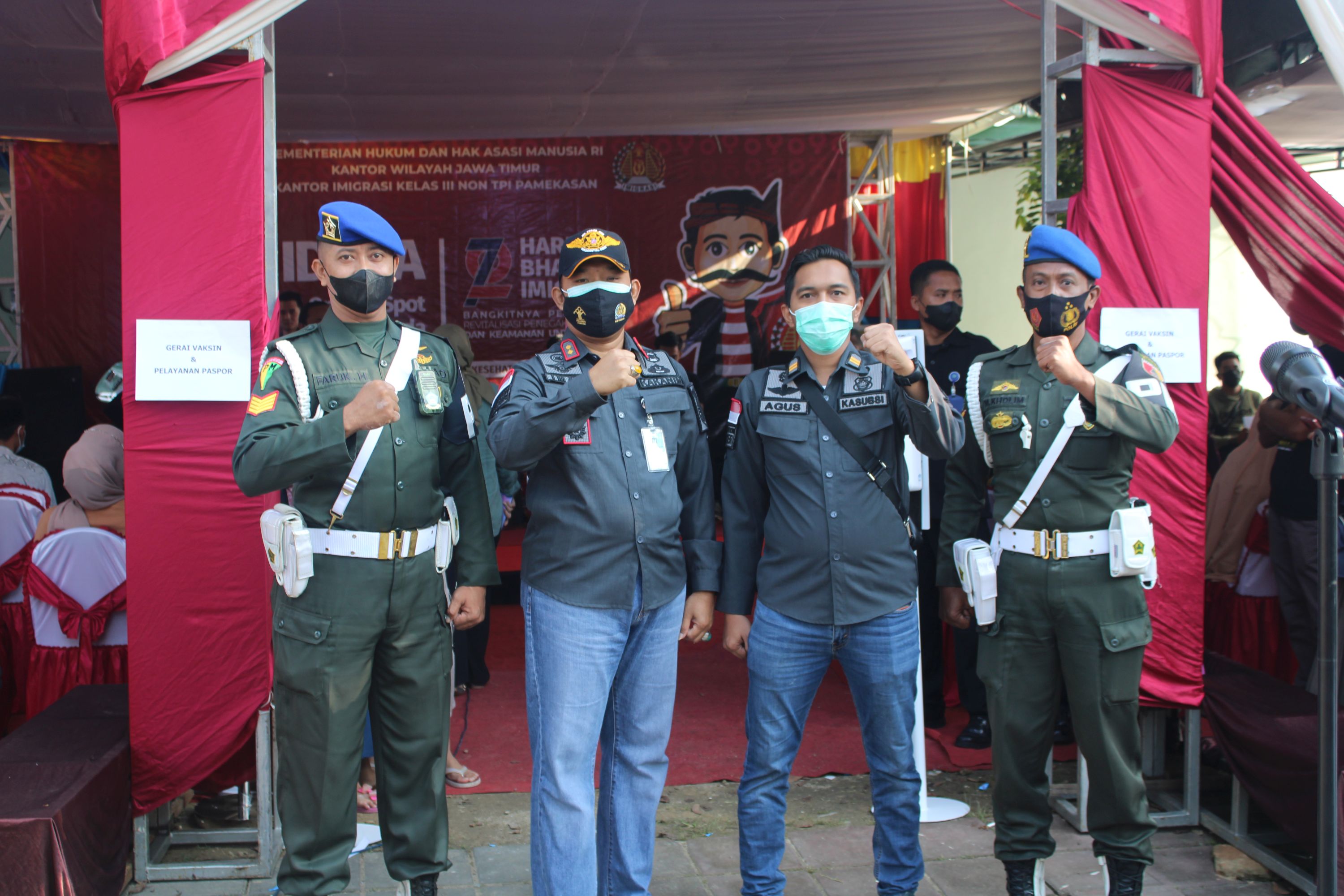 Ditemui di lokasi acara, Kepala Kantor Imigrasi (Kakanim) Kelas III Non TPI Pamekasan Imam Bahri menjelaskan bahwa, kegiatan tersebut merupakan wujud bakti Imigrasi kepada masyarakat penerima layanan di kota Gerbang Salam ini. "Dalam rangka memperingati Hari Bhakti Imigrasi Ke-72, kami bekerjasama dengan Dinas Kesehatan menyediakan pelayanan paspor Idola, di mana pemohon dapat mengajukan permohonan paspor tanpa antrian online, serta pelayanan vaksinasi Covid-19 tahap I dan tahap II yang diberikan secara gratis. Bagi masyarakat yang bersedia mengikuti vaksinasi gratis ini akan mendapatkan souvenir dari kami sekaligus berkesempatan mengikuti undian untuk mendapatkan paspor gratis. Alhamdulillah, tadi ada 1 orang yang beruntung mendapatkan paspor gratis.", tuturnya. Selain pembagian souvenir, dalam acara tersebut juga diadakan kuis bagi masyarakat. (AR)