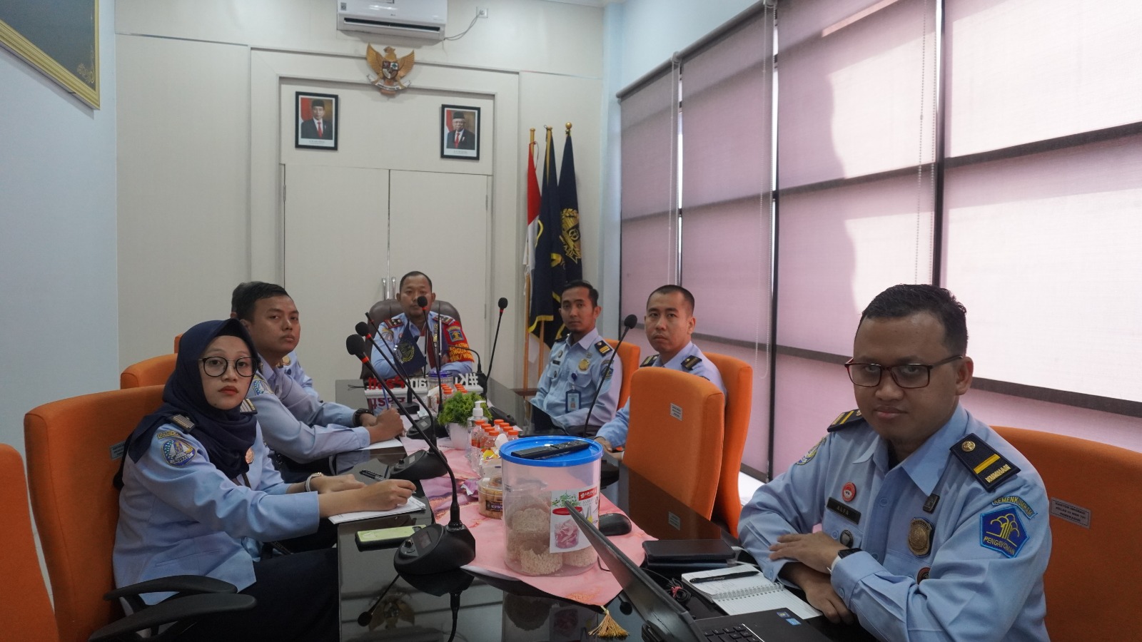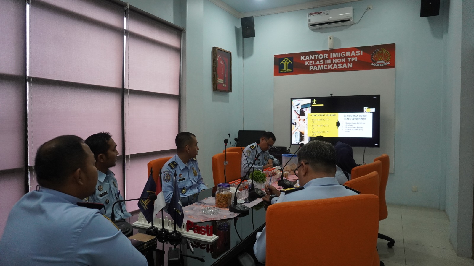 Kepala Kantor Imigrasi Kelas II Non TPI Pamekasan Imam Bahri, didampingi oleh Kepala Seksi Teknologi Informasi dan Komunikasi Keimigrasian Harsya Wardhana serta Kepala Seksi Dokumen Perjalanan dan Ijin Tinggal Keimigrasian Farhan Ferdiansyah, beserta perwakilan tim Pembangunan ZI pada Kantor Imigrasi Kelas II Non TPI Pamekasan mengikuti kegiatan ini secara daring melalui zoom meeting bertempat di ruang rapat Kepala Kantor.