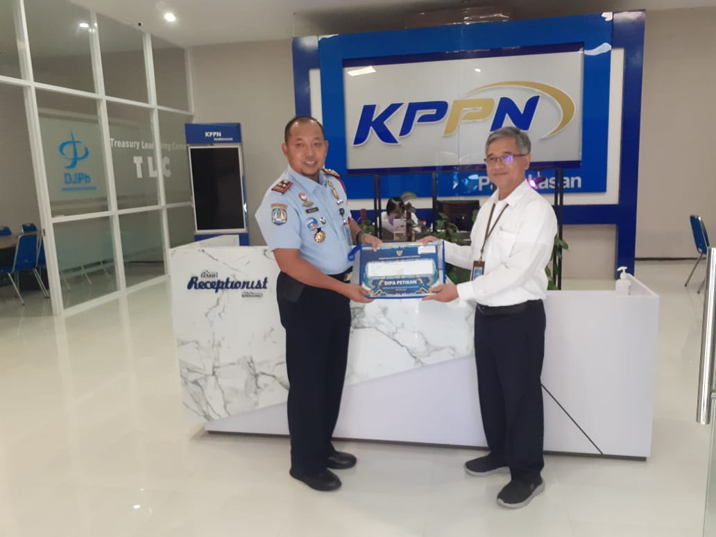 PAMEKASAN - Kepala Kantor Imigrasi Kelas III Non TPI Pamekasan Kanwil Kemenkumham Jawa Timur Imam Bahri mengunjungi Kantor Pelayanan Perbendaharaan Negara (KPPN) Kabupaten Pamekasan dalam rangka Penyerahan Daftar Isian Pelaksanaan Anggaran (DIPA) Tahun Anggaran 2023 pada Senin (26/12/2022) hari ini. Berlokasi di KPPN Kabupaten Pamekasan, Kepala Kantor Imigrasi (Kakanim) didampingi oleh JFU Bendahara Syaiful Hajat. DIPA 2023 diserahkan oleh Kepala KPPN Pamekasan Tri Tenggo Sukmono kepada Kepala Kantor Imigrasi Pamekasan Imam Bahri.