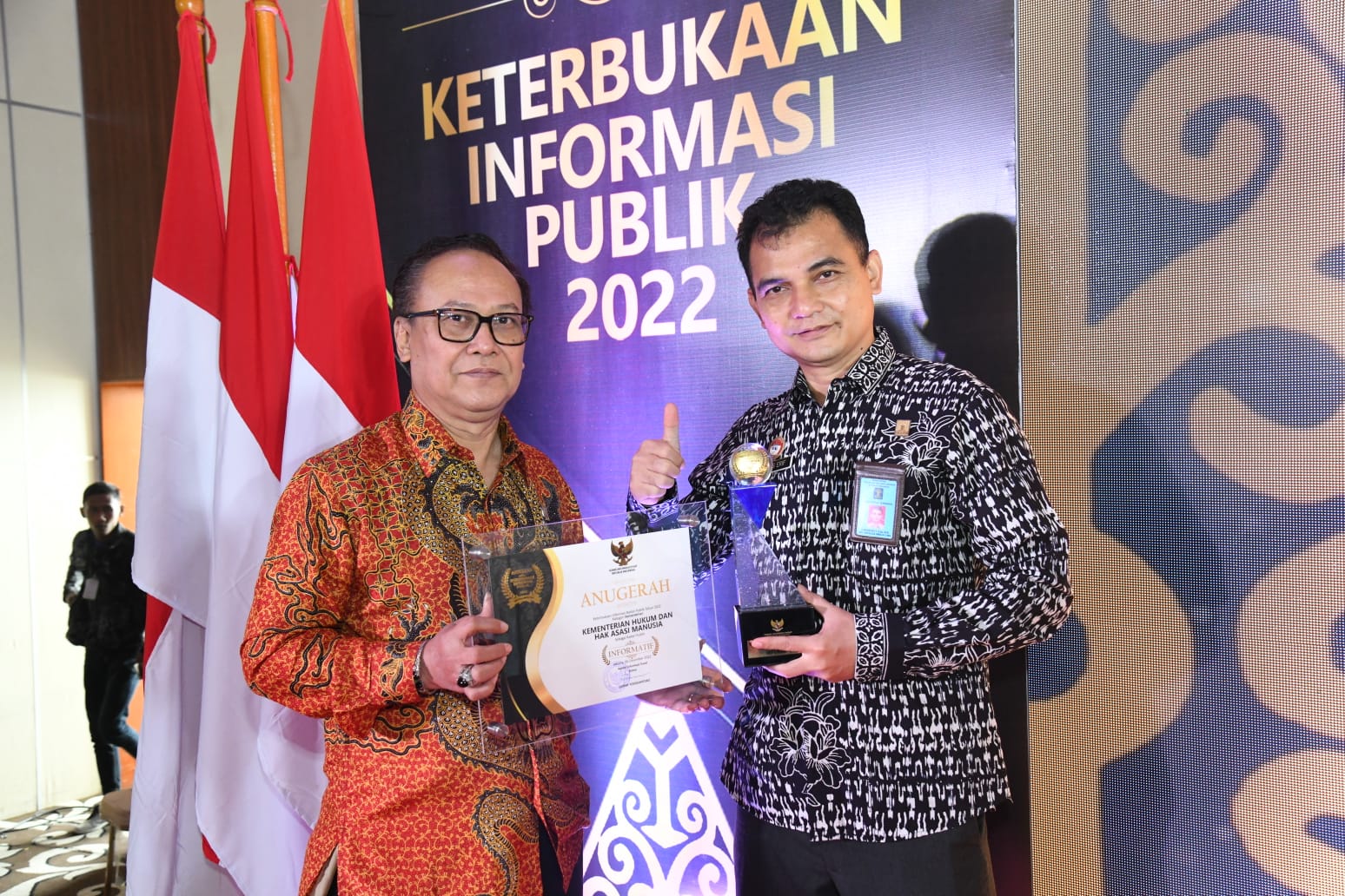 TANGERANG - Kementerian Hukum dan HAM (Kemenkumham) menerima penghargaan sebagai Badan Publik Informatif dari Komisi Informasi Pusat (KI Pusat). Kemenkumham masuk pada posisi 3 terbaik untuk kategori Kementerian dengan perolehan nilai 99,45 poin.