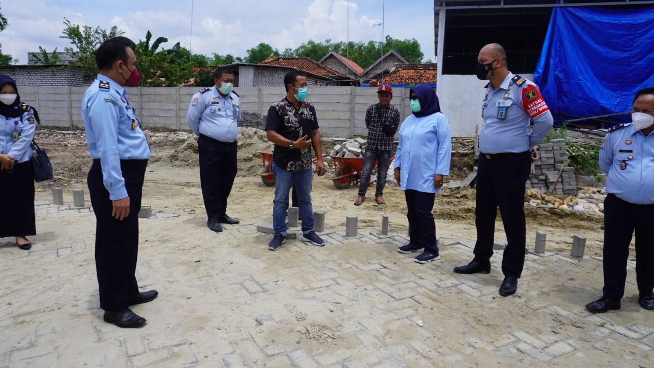 Kadivmin Indah Rahayuningsih (tiga dari kanan) melakukan Pengawasan terhadap proyek pembangunan halaman Kantor Imigrasi