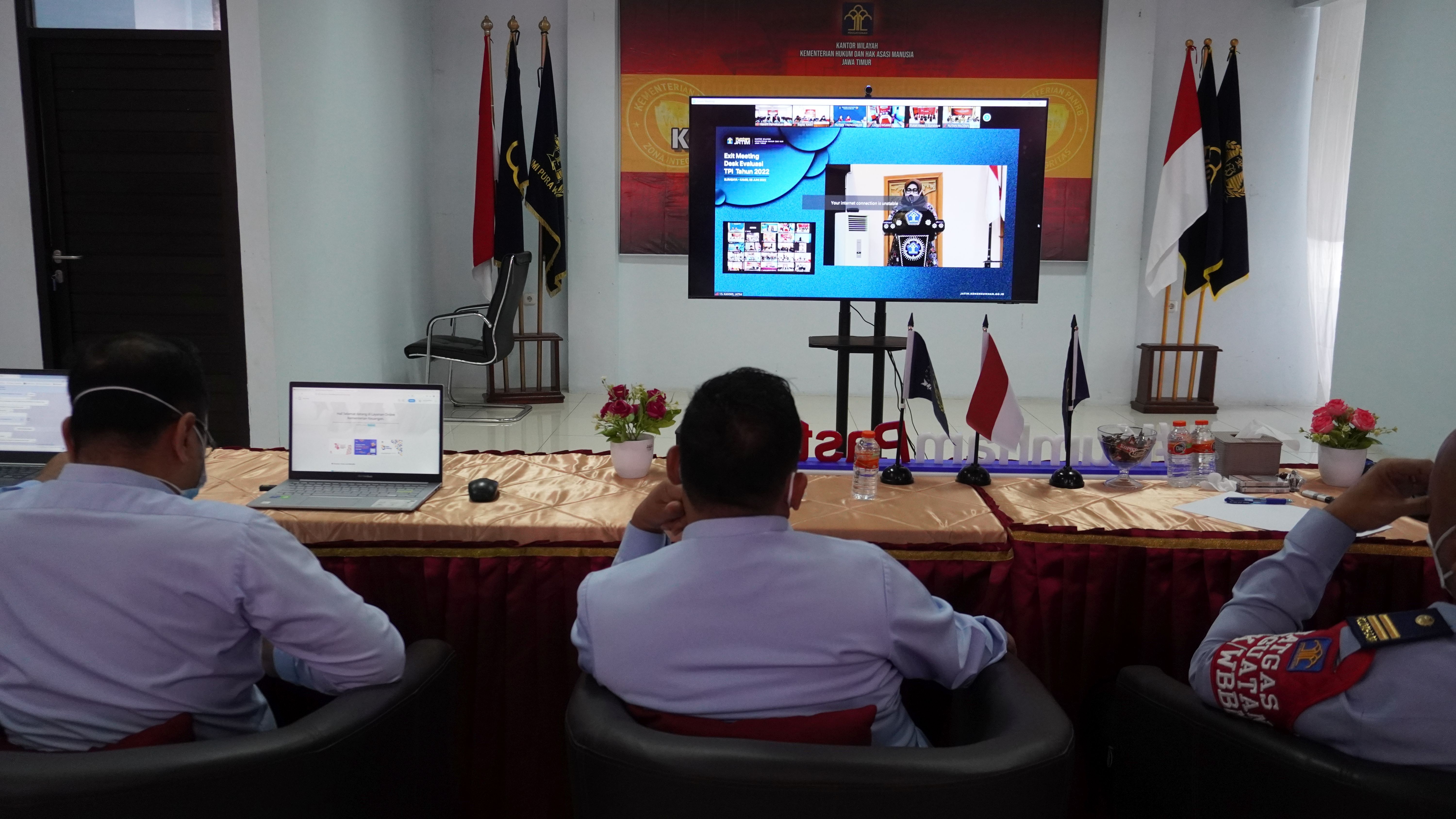 Mengakhiri kegiatan Desk Evaluation yang dilakukan oleh Tim TPI, Kanim Pamekasan mengikuti kegiatan Exit Meeting yang diselenggarakan secara daring melalui aplikasi Zoom di Aula Ratu Pamelingan. Kegiatan Exit Meeting sendiri berlangsung secara luring di Aula Raden Wijaya Kantor Wilayah Kementerian Hukum dan HAM Jawa Timur, serta secara daring melalui aplikasi Zoom. Dalam sambutannya, selaku Plh Kepala Kantor Wilayah Kementerian Hukum dan HAM Jawa Timur sekaligus Ketua ZI Kanwil Kemenkumham Jatim, Kadiv Administrasi Indah Rahayuningsih berharap bahwa hasil evaluasi dapat ditindaklanjuti oleh setiap satker di lingkungan kerjanya. Indah juga menjelaskan, Reformasi Birokrasi merupakan upaya pemerintah dalam mewujudkan prinsip good governance. Inti dari kegiatan Reformasi Birokrasi adalah membangun dan mengembangkan kapasitas negara atau state capacity. "Kapasitas negara menunjukkan kemampuan negara dalam mengimplementasikan tujuan kebijakan, baik secara umum dan tujuan yang lebih spesifik.", tuturnya.