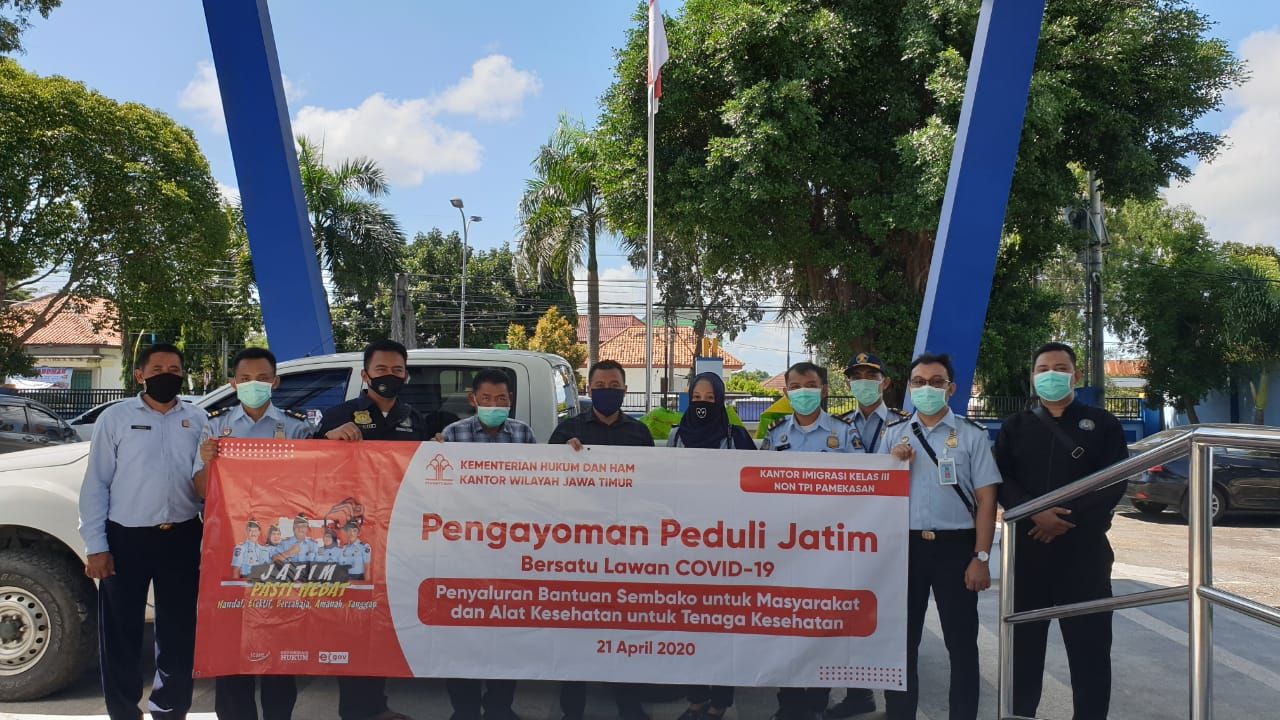 PAMEKASAN (21/4) - Kantor Imigrasi Kelas III Non TPI Pamekasan mengikuti kegiatan penyaluran bantuan langsung berupa paket sembako kepada masyarakat, dengan diberi tajuk 'Pengayoman Peduli Jatim: Bersatu Lawan COVID-19'. Pelaksanaan kegiatan tersebut dimulai pada pukul 10.00 pagi tadi. Kegiatan ini dilaksanakan sebagai tindak lanjut dari Instruksi Kepala Kantor Wilayah Kementerian Hukum dan HAM Jawa Timur untuk melaksanakan kegiatan sosial peduli Jatim secara serentak dengan memberi bantuan terhadap masyarakat sekitar yang terdampak Covid-19.