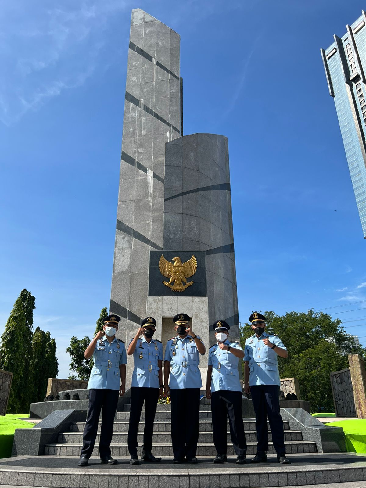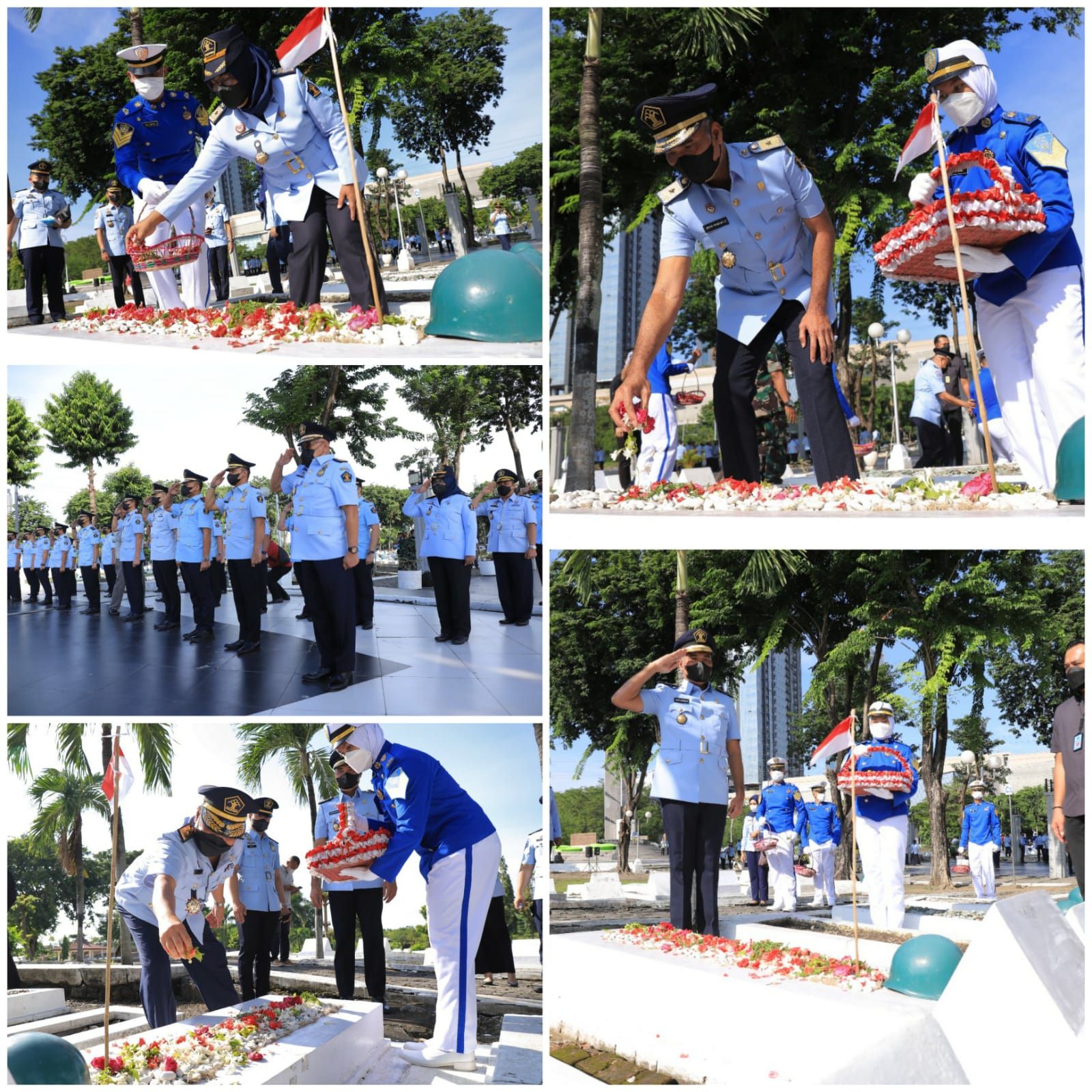 SURABAYA - Peringati Hari Bhakti Imigrasi Ke-72, Kantor Wilayah Kementerian Hukum dan HAM Jawa Timur bersama jajaran Unit Pelaksana Teknis Keimigrasian se-Jawa Timur melaksanakan Upacara Ziarah Tabur Bunga di Taman Makam Pahlawan (TMP) Mayjen Sungkono, Senin (24/01). Acara dimulai pada tepat pukul 08.00 WIB dan dihadiri Pimti Pratama, Pejabat Administrasi, Kepala Unit Pelaksana Teknis Keimigrasian di Jatim. Bertindak selaku Inspektur Upacara Pelaksana Tugas Kakanwil Kemenkumham Jatim Wisnu Nugroho Dewanto. Sementara Kabid Intelejen Keimigrasian Junaedi bertindak sebagai Perwira Upacara.