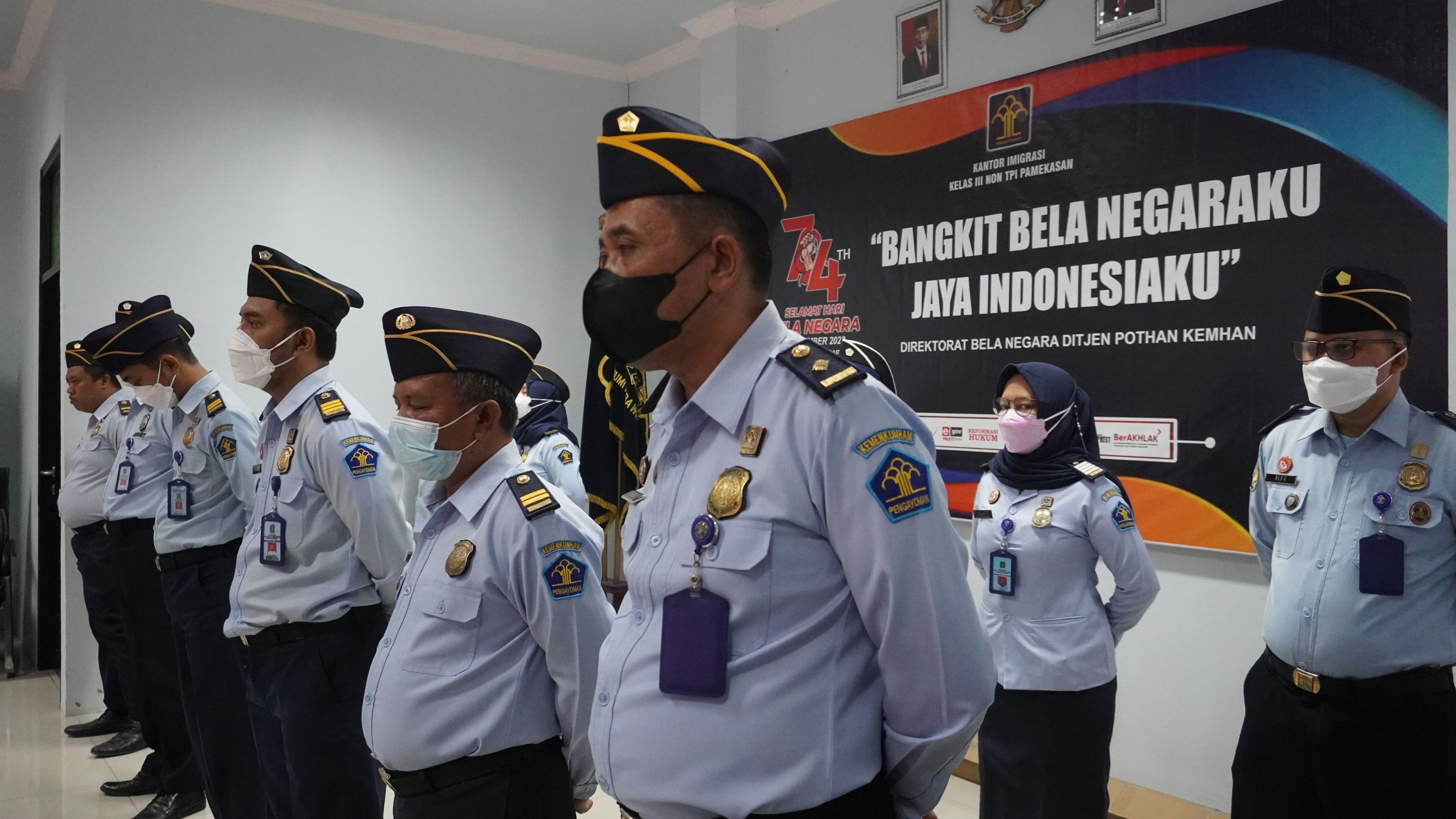 Kepala Kantor Imigrasi Imam Bahri, Kaur Tata Usaha Arief Chandra, dan ASN mengikuti upacara Hari Bela Negara