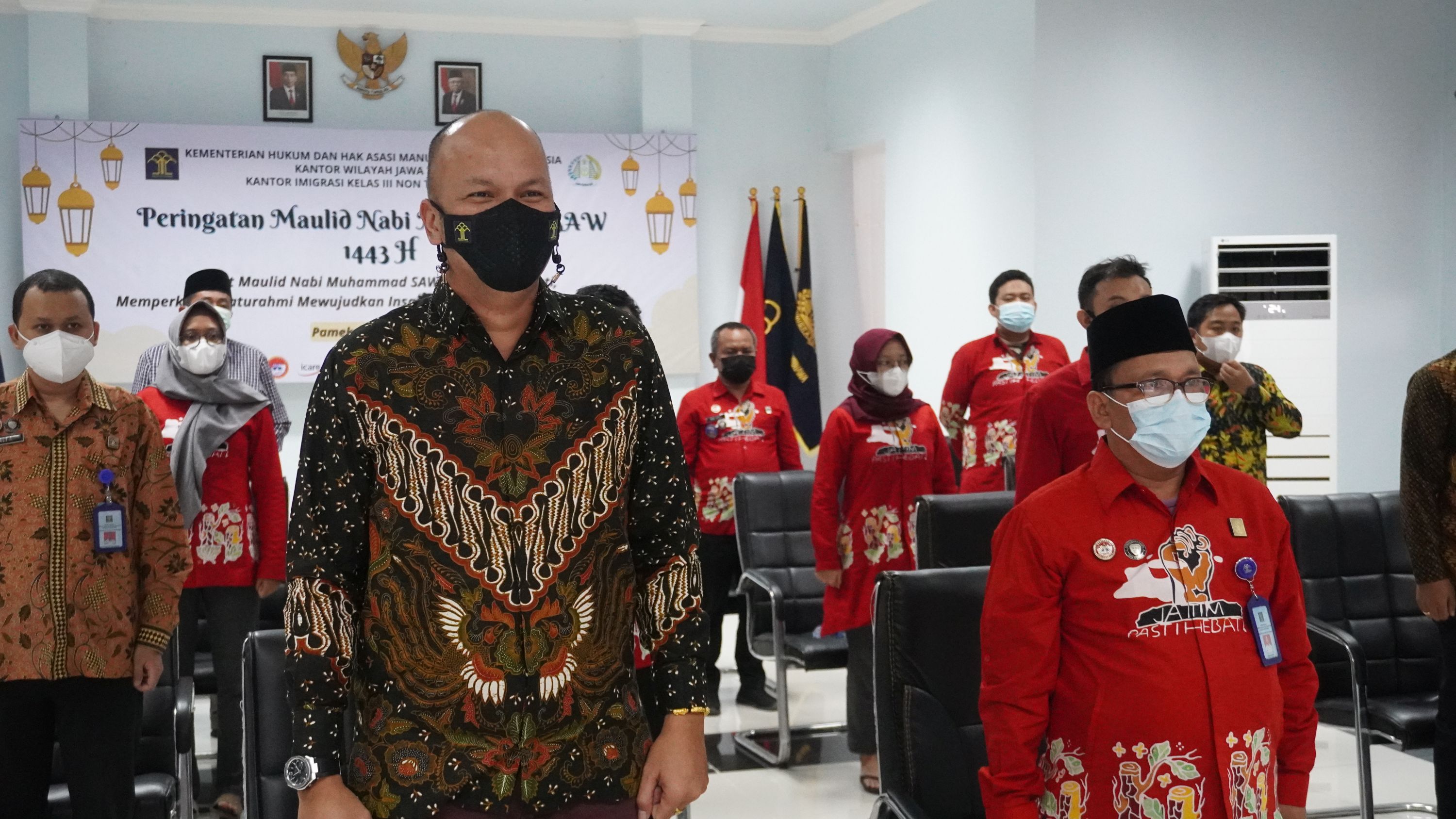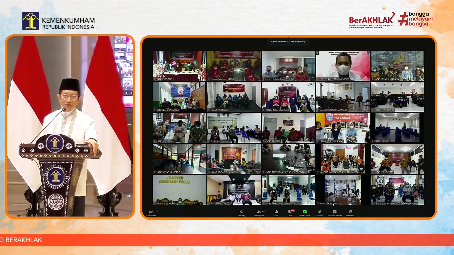 Kementerian Hukum dan HAM mengadakan acara Siraman Rohani dalam rangka memperingati Maulid Nabi Muhammad Shalallahu Alaihi Wassalam pada hari ini (05/11). Acara dimulai pada pukul 13.00 WIB dan berlangsung secara daring melalui aplikasi Zoom. Acara dibuka dengan menyanyikan Lagu Kebangsaan Indonesia Raya dan Mars Kementerian Hukum dan HAM, serta dilanjutkan dengan pembacaan ayat suci Al Qur'an oleh Ujairudin, SH dan saritilawah oleh Fitriyah Agustiani, S.Ag. Direktur Jenderal HAM Mualimin Abdi dalam sambutannya menekankan kepada seluruh insan pengayoman untuk dapat meneladani sifat-sifat Rasulullah Shalallahu Alaihi Wassalam serta dapat mengimplementasikannya pada kehidupan sehari-hari terlebih pada saat melaksanakan tugas.