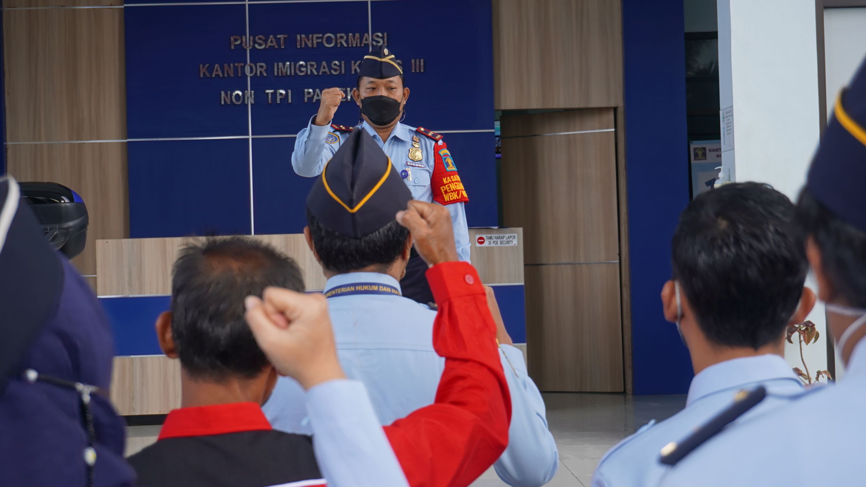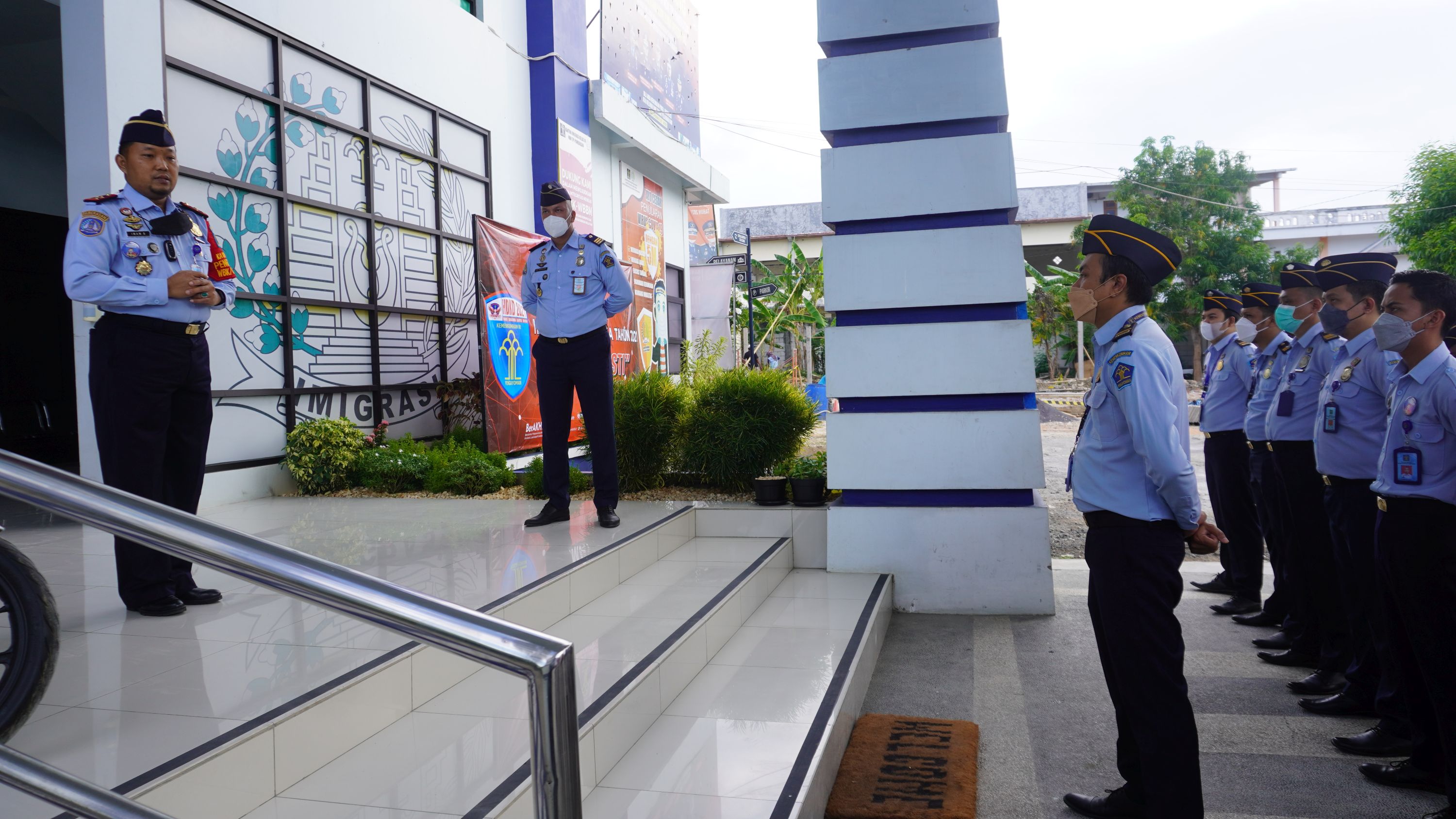 PAMEKASAN - Apel pagi yang digelar dan dihadiri jajaran pegawai Kantor Imigrasi Kelas III Non TPI Pamekasan Kanwil Kemenkumham Jawa Timur merupakan salah satu wujud atau gambaran dari tingkat kedisiplinan seluruh pegawai. Demikian di sampaikan Pembina Apel Kantor Imigrasi Kelas III Non TPI Pamekasan Kanwil Kemenkumham Jawa Timur, Imam Bahri, dihadapan segenap pegawai maupun PPNPN pada apel rutin pagi di halaman Kantor Imigrasi Kelas III Non TPI Pamekasan, hari ini (18/10). Lebih lanjut, Imam meminta kepada seluruh pegawai untuk menerapkan protokol kesehatan serta tetap menjaga eksistensi saat menjalani tugas dan fungsinya dalam memberikan pelayanan kepada masyarakat meski di tengah pandemi.