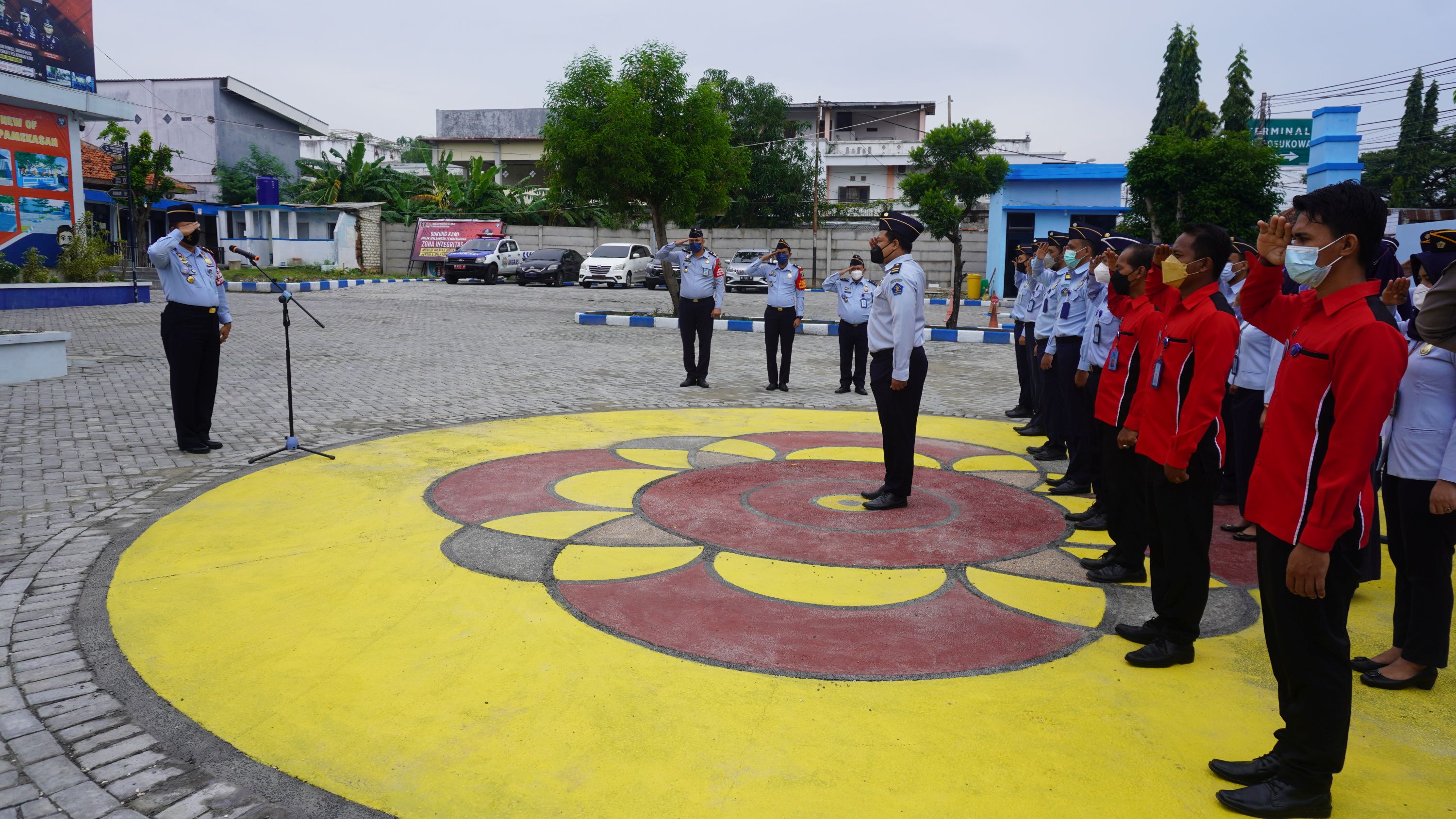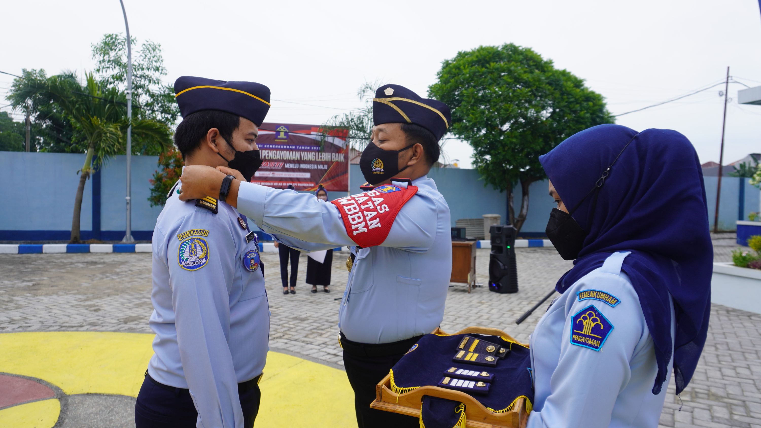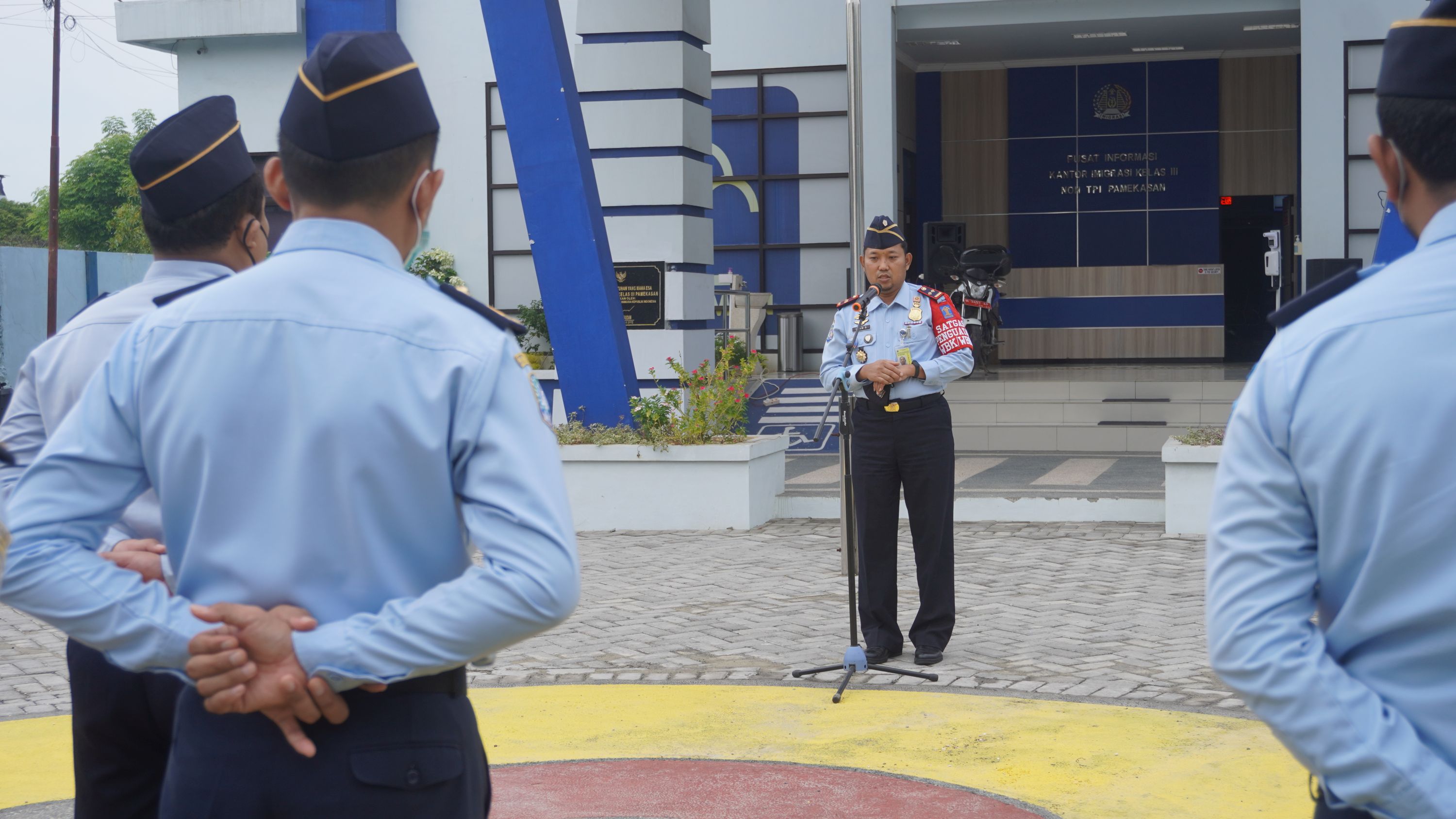 PAMEKASAN - Kepala Kantor Imigrasi Kelas III Non TPI Pamekasan Imam Bahri memimpin kegiatan apel pagi di awal tahun 2022 ini. Kegiatan apel pagi yang berlangsung di halaman Kantor Imigrasi Kelas III Non TPI Pamekasan Kanwil Kemenkumham Jawa Timur ini, dihadiri juga oleh pejabat struktural yaitu Kaur TU Arief Chandra, Kasubsi TI Inteldakim Darwin Piandu dan Kasubsi Yanverdokim Agus Surono. Kegiatan apel pagi ini dimulai dengan penyematan tanda kenaikan pangkat bagi 3 orang pegawai.