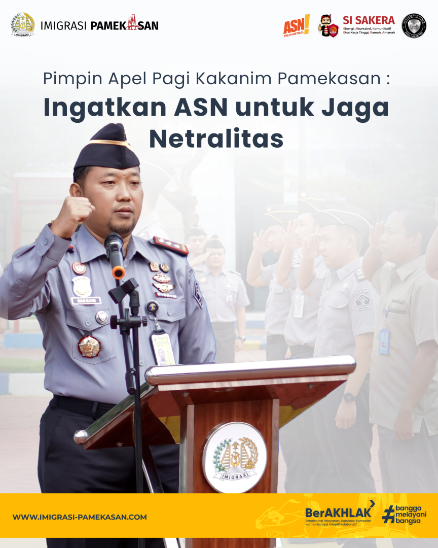 "Seluruh jajaran Kantor Imigrasi Kelas II Non TPI Pamekasan akan berupaya menjaga integritas dan netralitas ASN untuk terwujudnya Pemilu 2024 yang bermartabat. Saya juga mengajak berkoordinasi semua pegawai, khususnya para ASN, guna memastikan netralitas dalam menghadapi Pemilu 2024," ujar Imam. Hal ini, Imam menambahkan, perlu ditegaskan agar para ASN tidak melakukan perbuatan yang dapat mengindikasikan dukungan terhadap partai politik atau pasangan calon (paslon) tertentu.