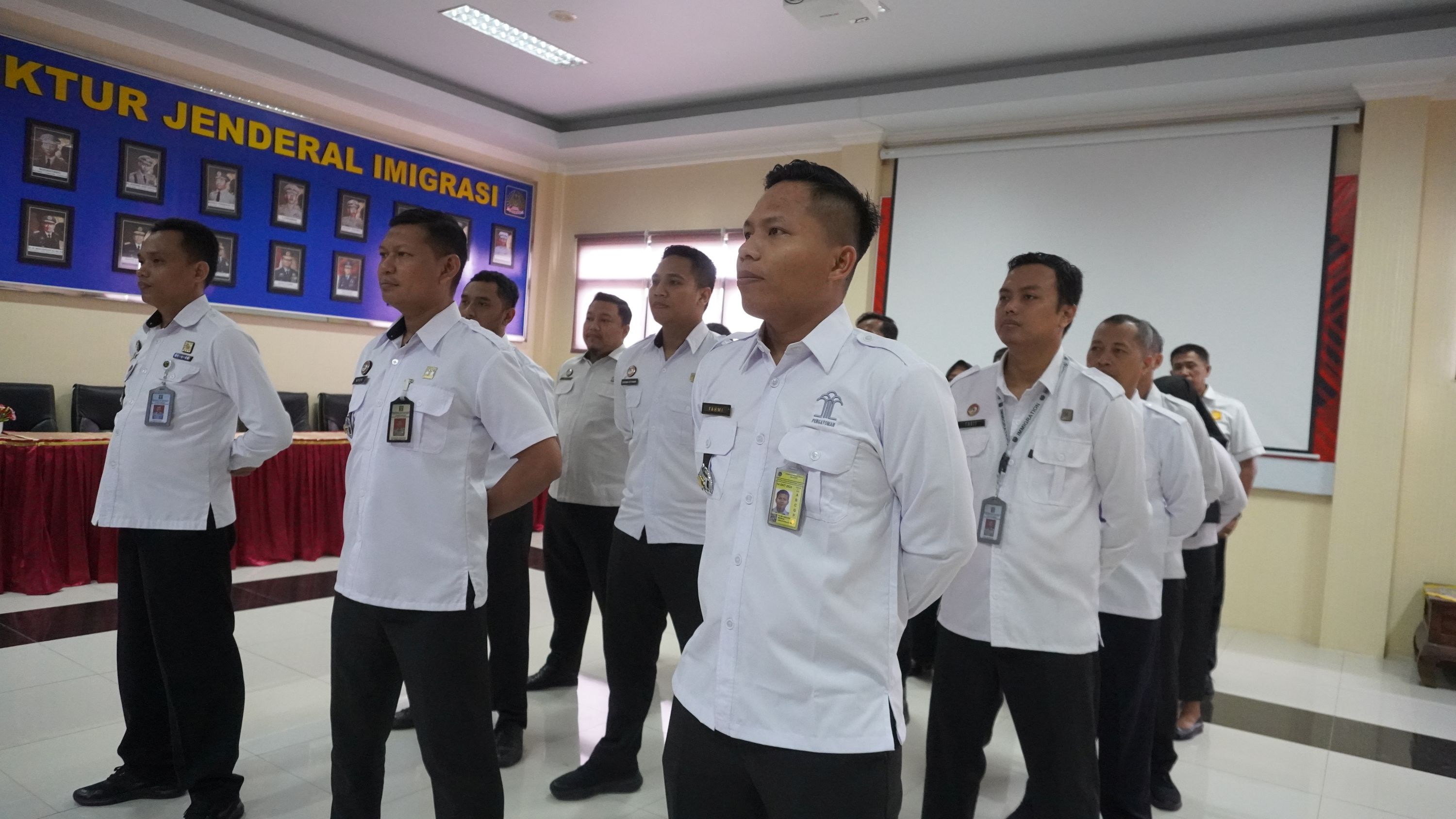 PAMEKASAN - Menteri Hukum dan HAM Republik Indonesia Yasonna H Laoly memimpin apel pagi di halaman kantor Kementerian Hukum dan HAM. Adapun Kepala Kantor Imigrasi Kelas II Non TPI Pamekasan, pejabat struktural dan pegawai mengikuti kegiatan apel pagi secara terpisah, di mana Kepala Kantor beserta sejumlah pejabat struktural dan pegawai mengikuti apel pagi di Kantor Wilayah Kementerian Hukum dan HAM Jawa Timur, dan sejumlah pejabat struktural serta sebagian pegawai lainnya mengikuti kegiatan di Ruang Aula Ratu Pamelingan Kantor Imigrasi Kelas II Non TPI Pamekasan.