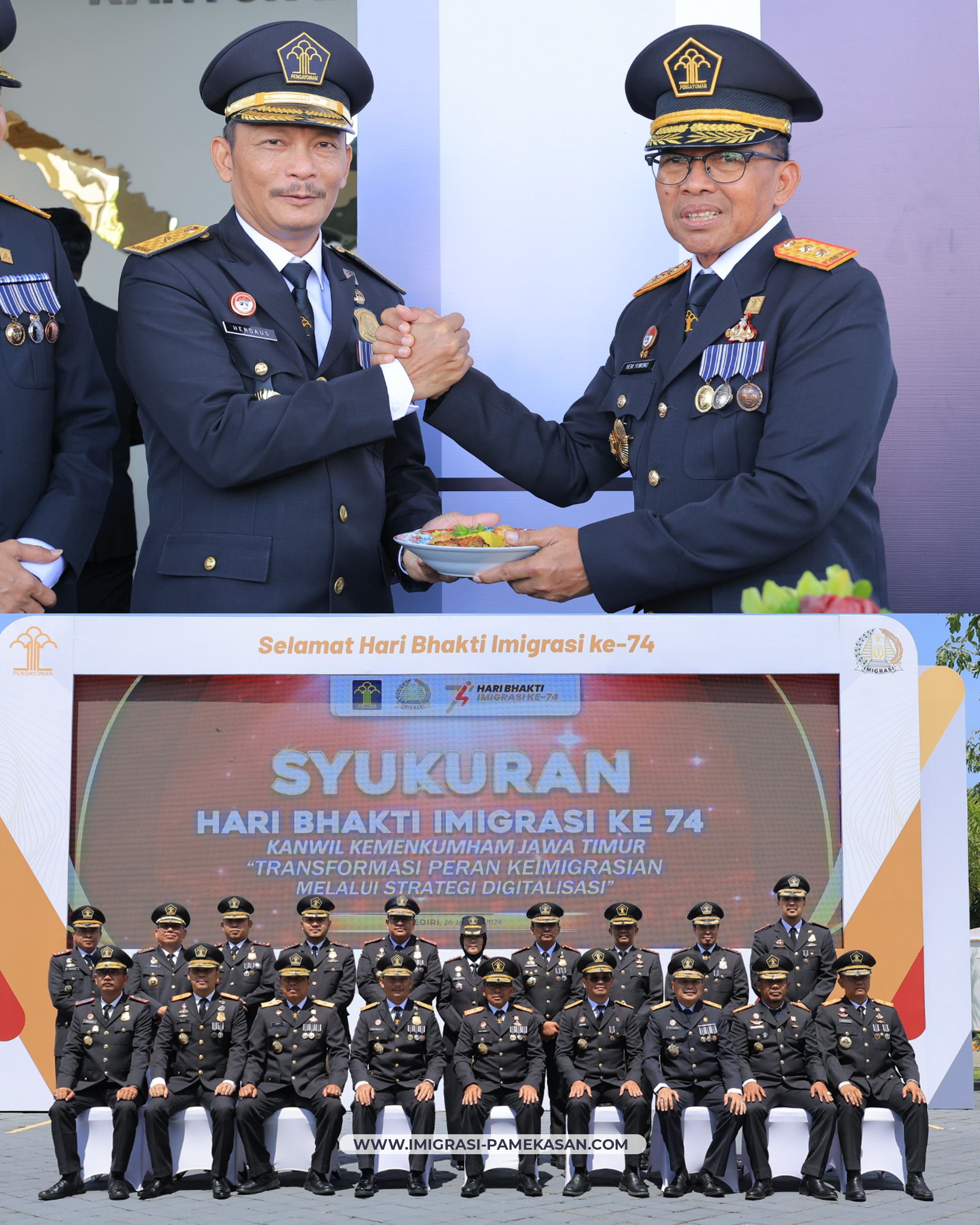 Pada momen Hari Bhakti Imigrasi (HBI) ke-74 jajaran satuan kerja keimigrasian di lingkungan Kantor Wilayah Kementerian Hukum dan HAM Jawa Timur yang dipimpin Heni Yuwono itu menegaskan komitmennya dalam melaksanakan transformasi peran keimigrasian melalui strategi digitalisasi.