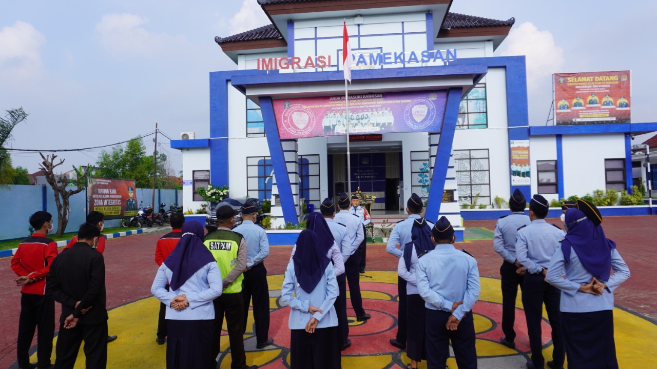 PAMEKASAN - Kepala Kantor Imigrasi Kelas III Non TPI Pamekasan Imam Bahri memimpin kegiatan apel pagi pada Senin (12/12/2022) hari ini. Kegiatan apel pagi yang berlangsung di halaman Kantor Imigrasi Kelas III Non TPI Pamekasan Kanwil Kemenkumham Jawa Timur ini, dihadiri juga oleh pejabat struktural yaitu Kaur TU Arief Chandra. Menurut Kepala Kantor Imigrasi Kelas III Non TPI Pamekasan Kanwil Kemenkumham Jawa Timur Imam Bahri selaku pembina apel, di hadapan pejabat struktural, segenap pegawai, beserta PPNPN, apel merupakan salah satu wujud atau gambaran dari tingkat kedisiplinan seluruh pegawai.