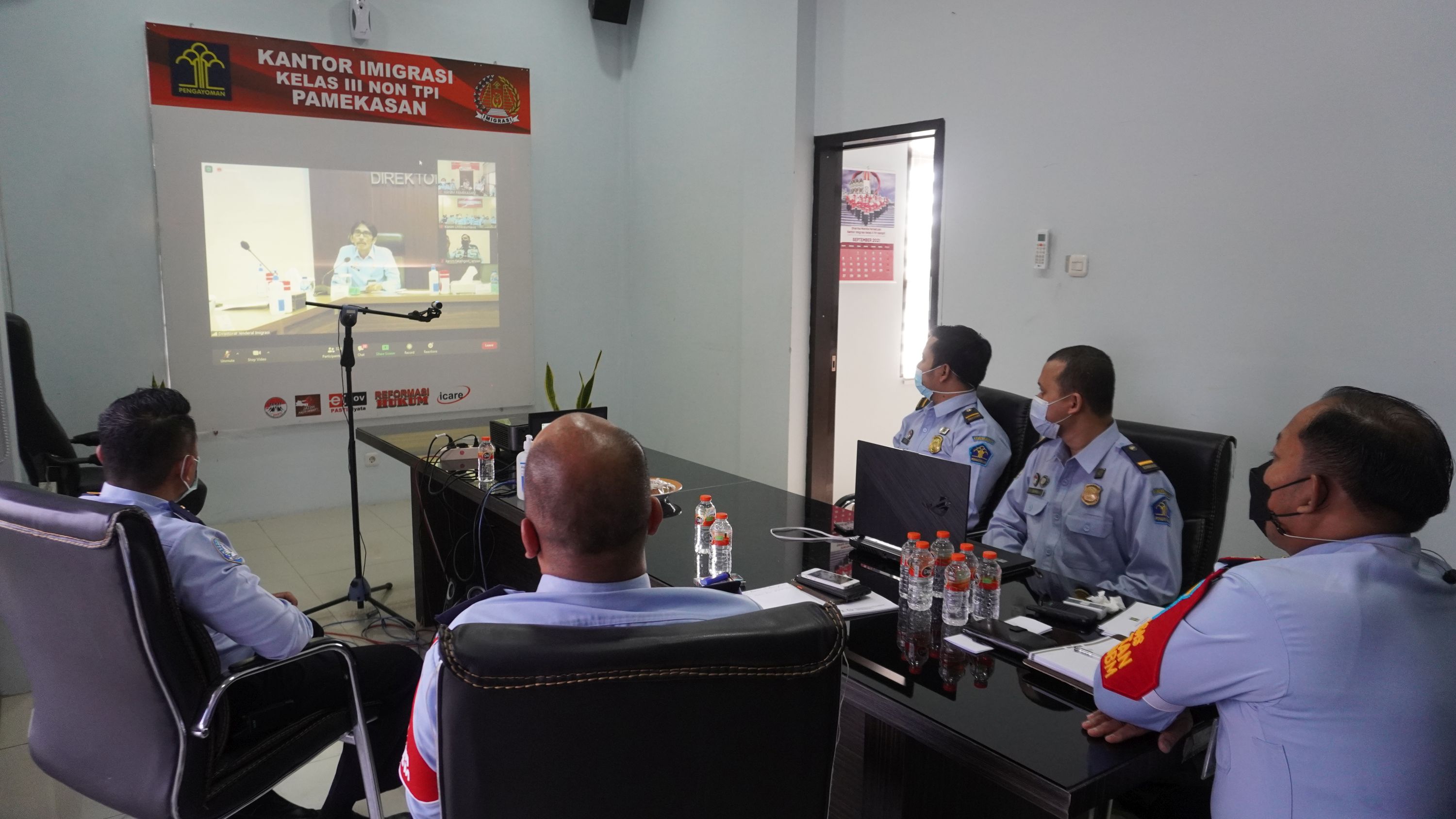 Dalam kegiatan Sosialisasi Peraturan Menteri Hukum dan HAM tentang Konsultan dan Penjamin Keimigrasian, Dit Sistik memberikan materi berupa penguatan terkait Aplikasi Kesisteman Konsultan dan Penjamin. Kegiatan yang diikuti oleh Kepala Kantor Imigrasi (Kakanim) Kelas III Non TPI Pamekasan Kanwil Kemenkumham Jawa Timur, Imam Bahri, beserta seluruh Kasatker di wilayah Indonesia tersebut berlangsung pada pukul 13.30 WIB hari ini (19/10). Sambutan disampaikan oleh Plt Direktur Jenderal Imigrasi Widodo Ekatjahjana, Direktur Pengawasan dan Penindakan Keimigrasian Pria Wibawa dan Direktur Penindakan Keimigrasian Ratna Pristiana Mulya. "Kepentingan institusi haruslah diutamakan, namun kita tak lupa untuk merangkul stakeholder, yaitu para calon penjamin maupun konsultan keimigrasian. Hal ini penting untuk dilakukan sehingga ikut menjaga kebijakan-kebijakan keimigrasian.", tutur Prof Widodo.