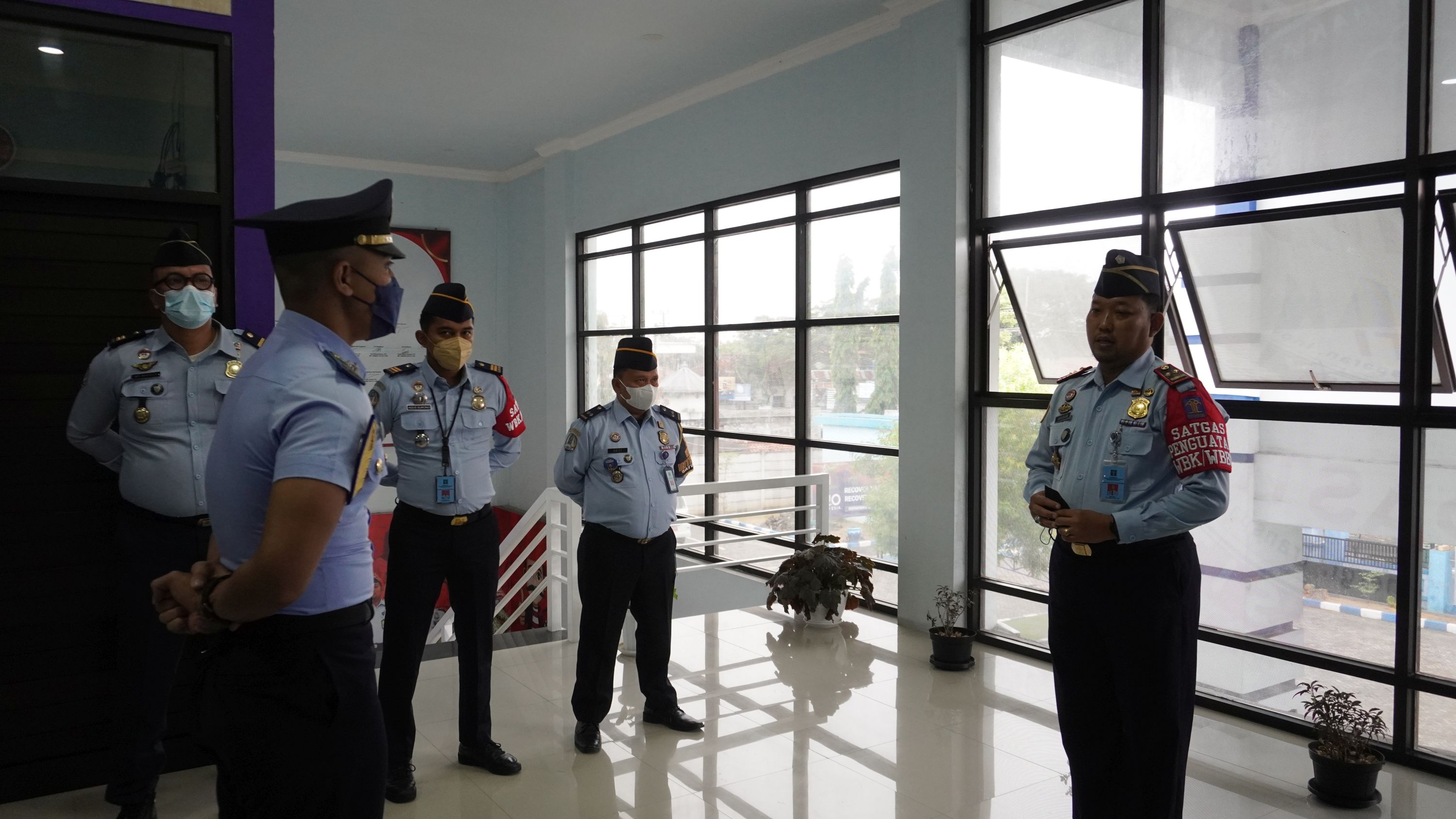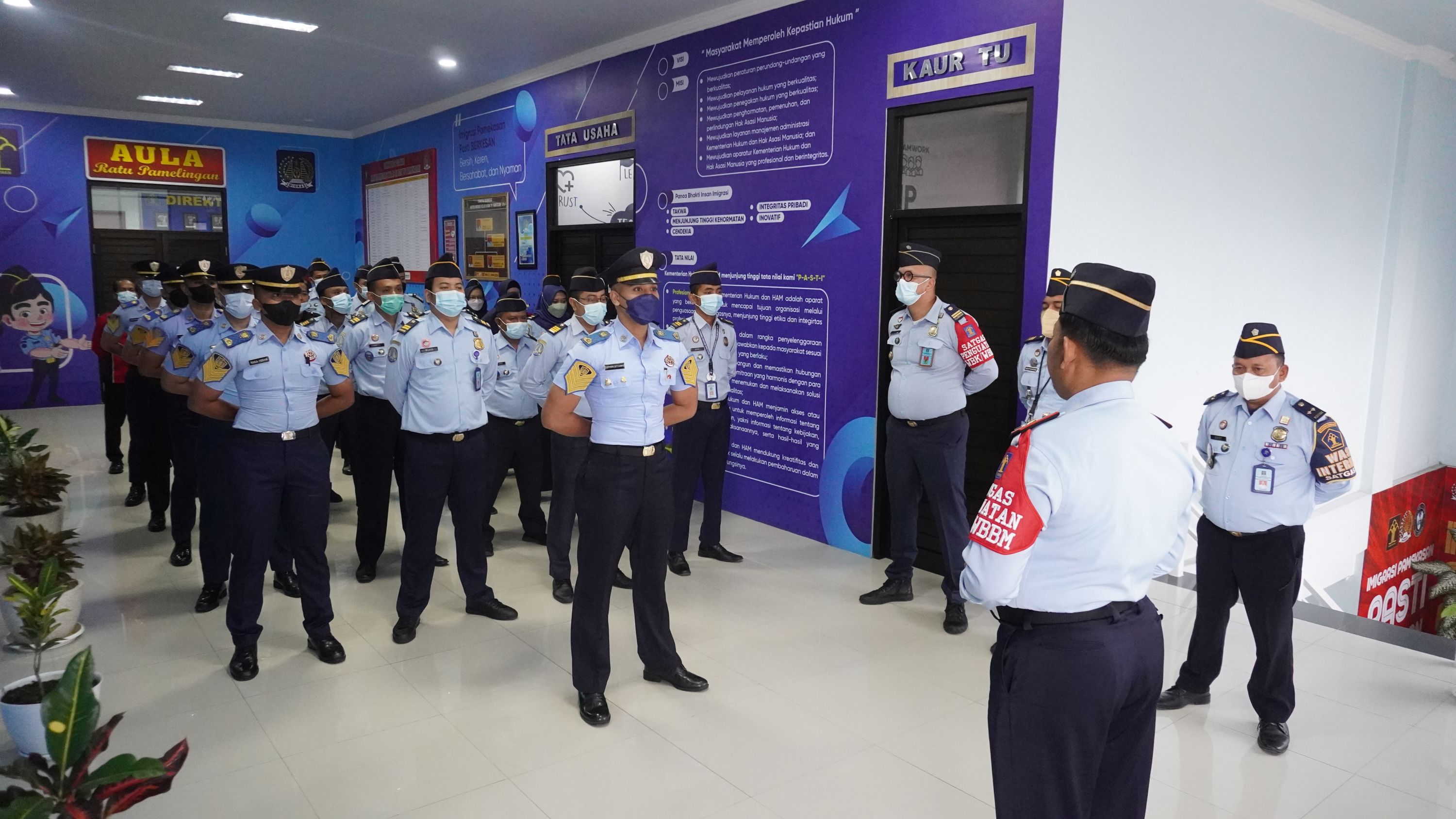 PAMEKASAN - Kepala Kantor Imigrasi Kelas III Non TPI Pamekasan Imam Bahri memimpin kegiatan apel pagi di pertengahan bulan Juni tahun 2022 ini. Kegiatan apel pagi yang berlangsung di selasar Lantai 2 Kantor Imigrasi Kelas III Non TPI Pamekasan Kanwil Kemenkumham Jawa Timur ini, dihadiri juga oleh pejabat struktural yaitu Kaur TU Arief Chandra, Kasubsi TI Inteldakim Darwin Piandu dan Kasubsi Yanverdokim Agus Surono. Apel merupakan salah satu wujud atau gambaran dari tingkat kedisiplinan seluruh pegawai. Demikian disampaikan Kepala Kantor Imigrasi Kelas III Non TPI Pamekasan Kanwil Kemenkumham Jawa Timur Imam Bahri selaku pembina apel, di hadapan pejabat struktural, segenap pegawai maupun PPNPN pada apel rutin pagi, hari ini (13/6).